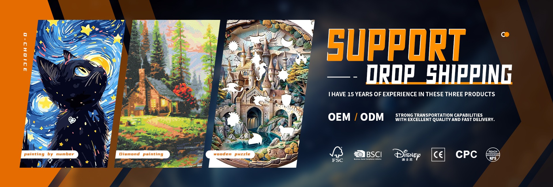 ผลิตภัณฑ์หลัก:ภาพวาดเพชร, ภาพวาดตามจำนวน, อุปกรณ์เสริมภาพวาดเพชร, ปริศนาไม้